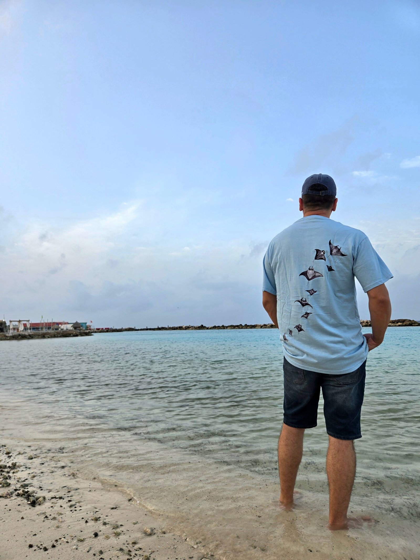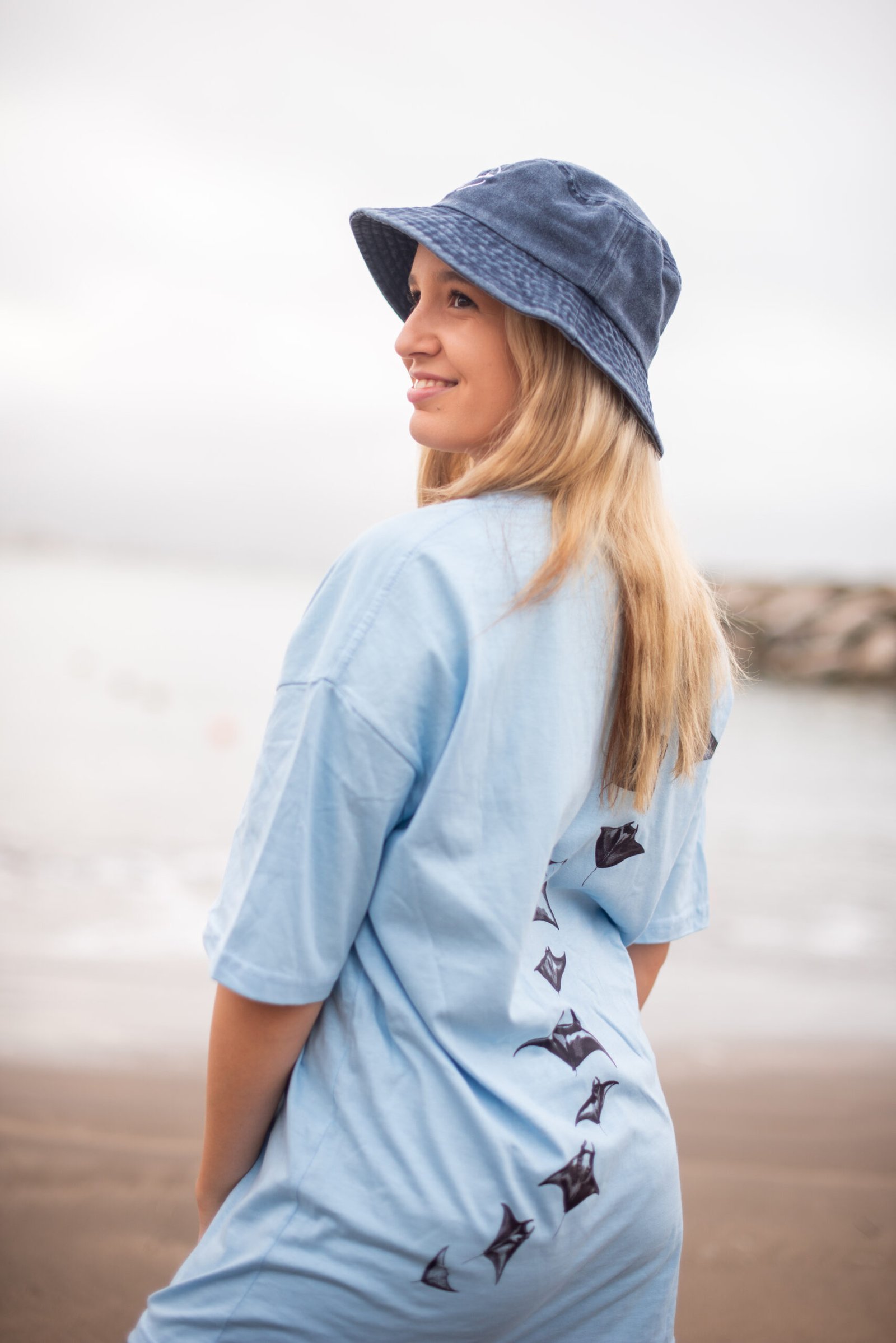 La estampa exclusiva en la espalda, inspirada en la silueta y movimiento de las manta rayas, conecta directamente con el espíritu de Manta Vibes: aventura, océano y libertad. Perfecta para quienes buscan ropa de playa con diseño original.